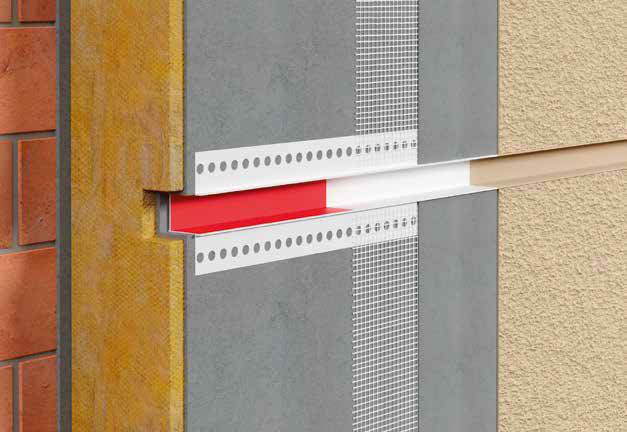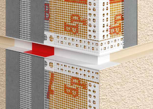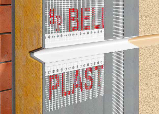 Сразу после нанесения штукатурки удалите изнутри профиля красную защитную плёнку. Если используется профиль BP11 H1 RS — удалите поролон (мягкую пену) после завершения штукатурных работ.