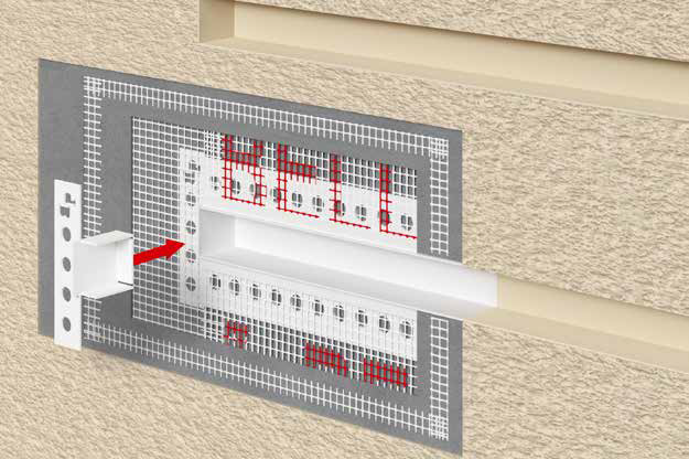 Профиль используется для создания декоративных разделительных полос (рустов) на поверхности теплоизолированного фасада.