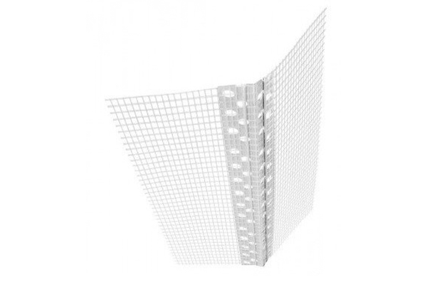Монтаж: Уголки ПВХ BP4 с сеткой должны быть установлены на каждом вертикальном углу утепленного фасада. Вклеивание уголка должно быть проведено в одной операции, вместе с установкой армирующей сетки фасада.
